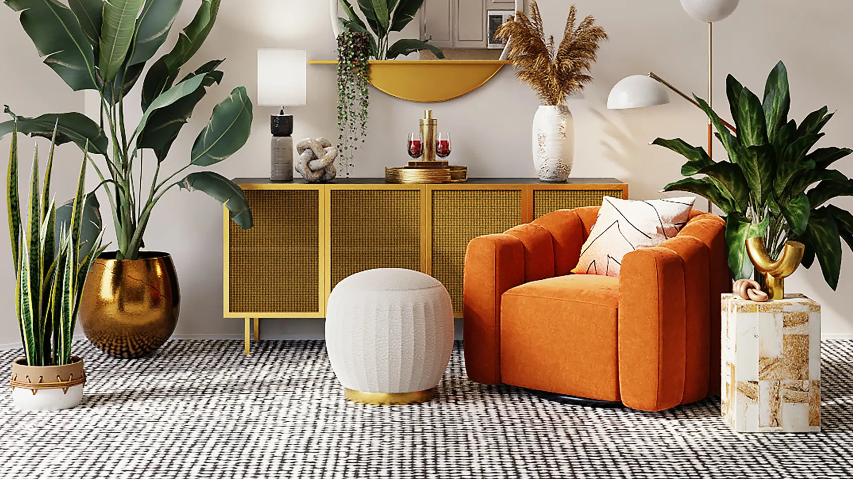 Gaia- Tapete geométrico naranja Shokan Años de uso: 1-6 mesesDaños o detalles: Sin detalles visibles,...
