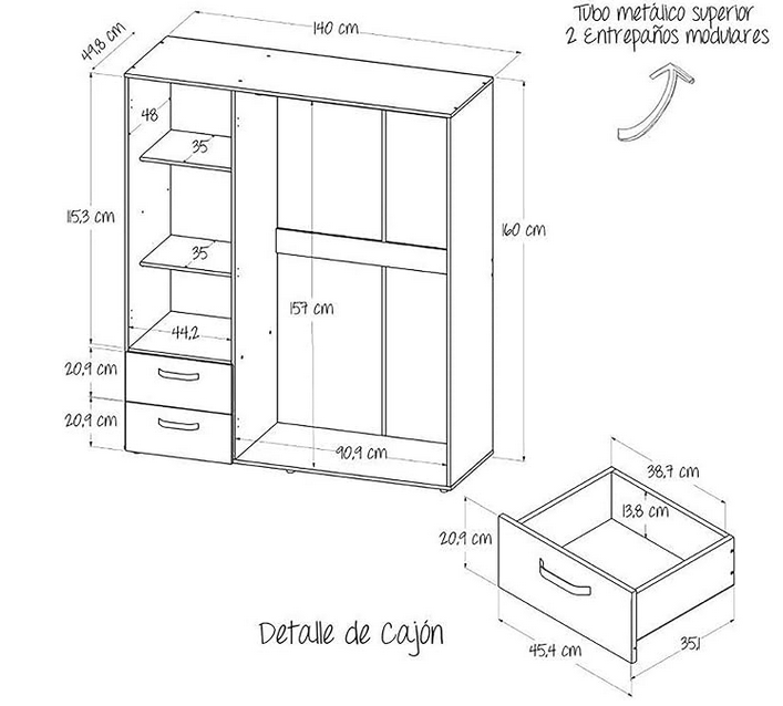 Medidas: Largo: 140 cm, Alto:160 cm, Profundidad:49.8 cm