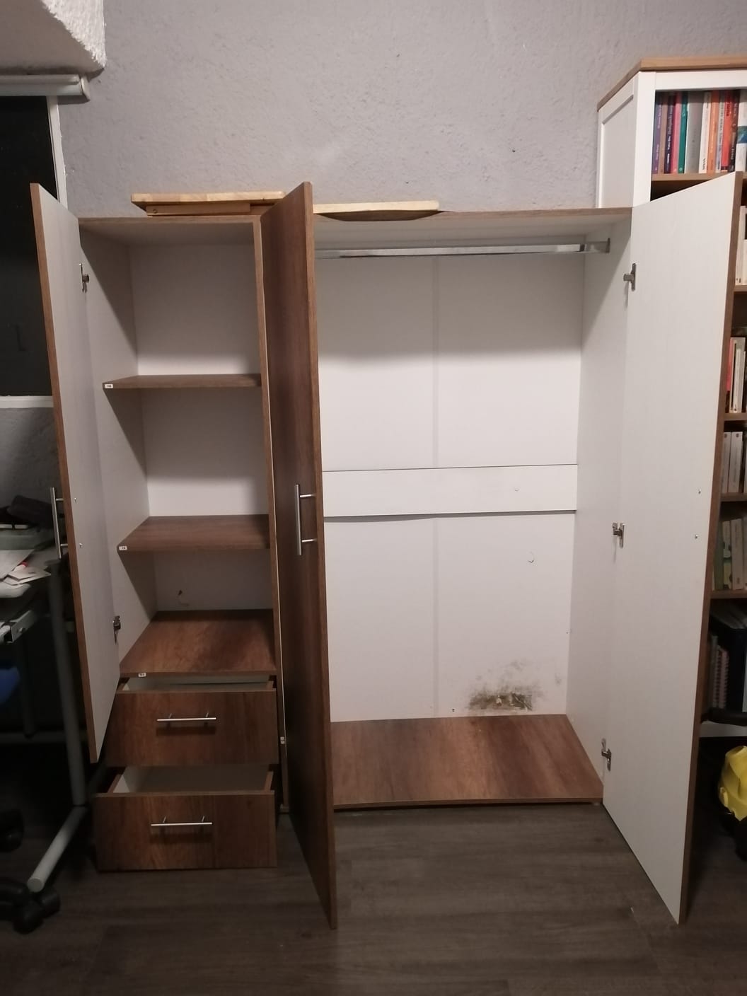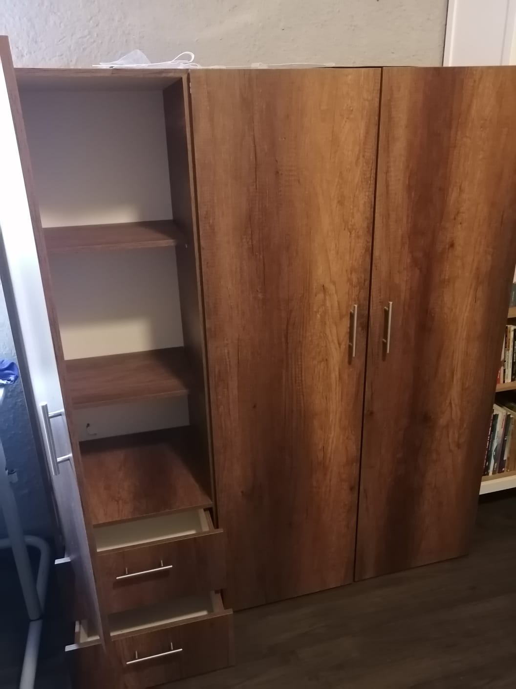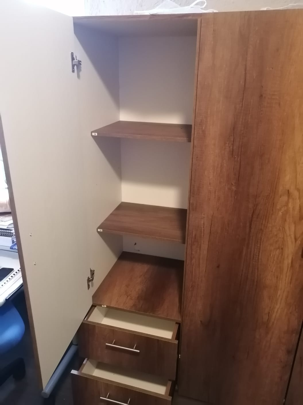Notas del Vendedor:Amplio espacio de almacenamiento: Este ropero cuenta con tres puertas abatibles y dos cajones con manijas, un diseño interior bien distribuido que ofrece un amplio espacio de almacenamiento. Con tubo superior para colgar ropa y un compartimento lateral con 3 entrepaños, puedes organizar y guardar tu ropa de manera eficiente. Además cuenta con 2 cajones inferiores.