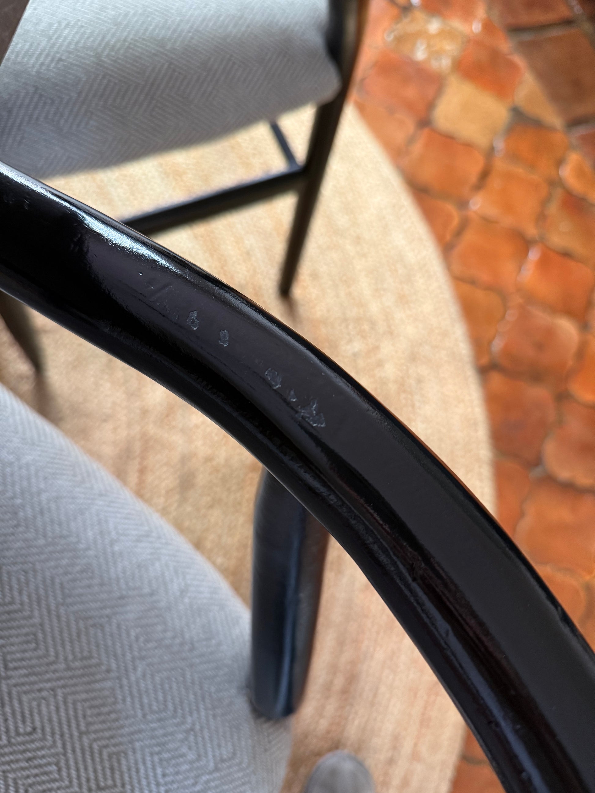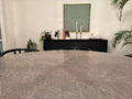 Notas del Vendedor:Mesa de mármol turco Gris Rochelle de 1.60 metros de diametro con set de 6 sillas wish bone negras con asiento de tela extra cómodo.