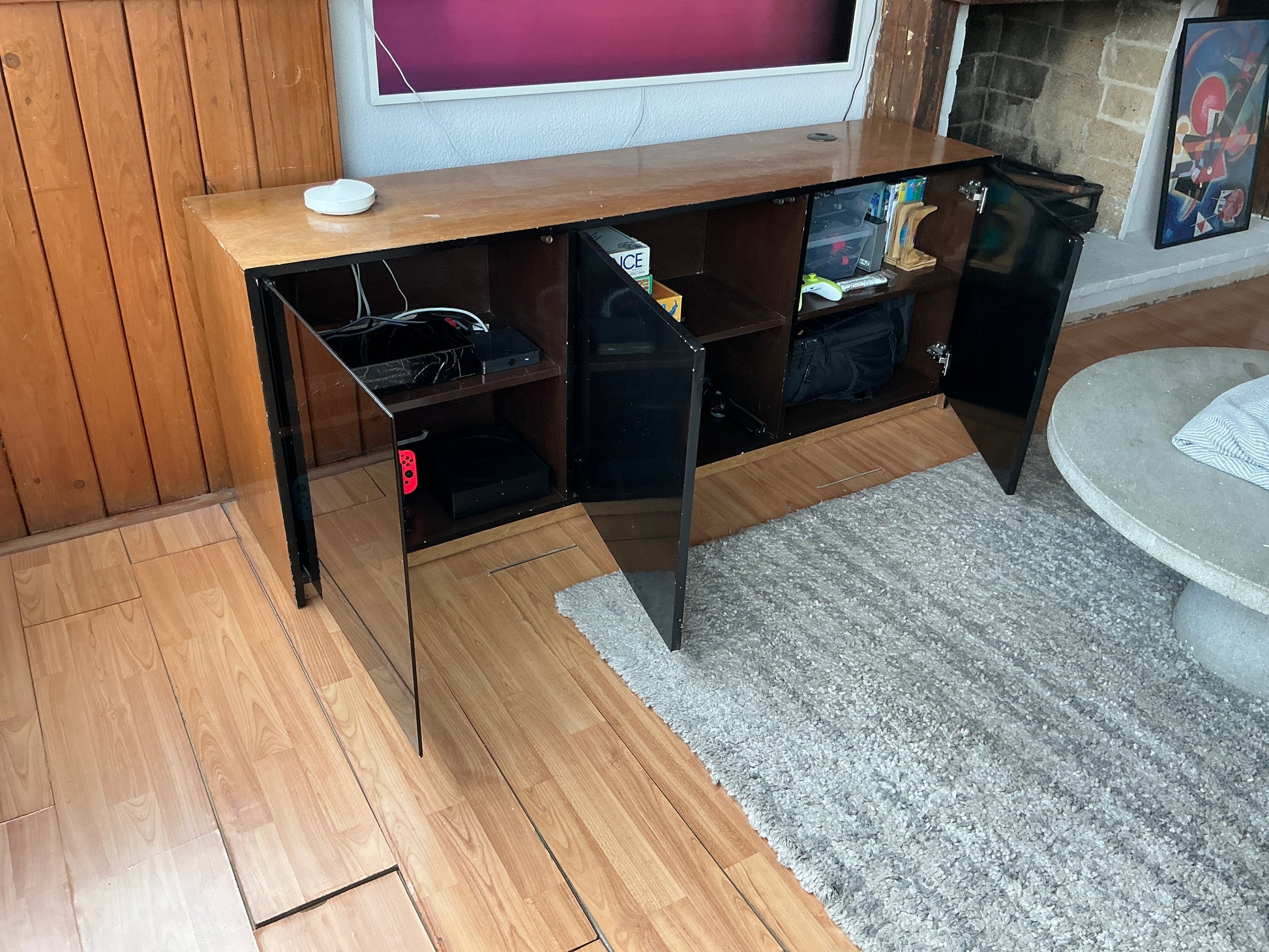 Notas del Vendedor:Mueble te TV de madera en excelentes condiciones, cuenta con 3 compartimentos con un entrepaño cada uno, 2 puertas de madera uy un cristal templado para el fácil acceso al control remoto, ranuras para el paso de cables en cada sección, medidas: 1.70m largo x .65m altura x .40m profundidad, cuenta con una pestaña de 5.5cm para el fácil acceso y colocación de cables, esto para no hacer un bulto de cables pegados en la pared