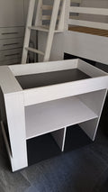 Notas del Vendedor:La extraordinaria cama alta de la colección Nest . Está diseñada y fabricada en medida de colchón individual europea (90 x 200). Cuenta con materiales de la más alta calidad. La escalera ligeramente inclinada hará que bajar y subir de la cama sea fácil. Su escritorio será de gran ayuda a la hora de hace las tareas escolares y desarrollar su creatividad, sus 4 rueditas facilitarán el desplazamiento por la recámara. El contenedor multiuso es perfecto para guardar y ordenar juguetes, artículos deportivos y ropa de cama. El colchón modular se compone de 4 piezas que se puedes agrupar y desagrupar fácilmente, colócalo sobre el piso y crea un asiento fácilmente o extiéndelo para conseguir un colchón para un invitado extra. La cama también tiene una pequeña biblioteca con un compartimento secreto. Elaborado en tablero de alta densidad (HDF).