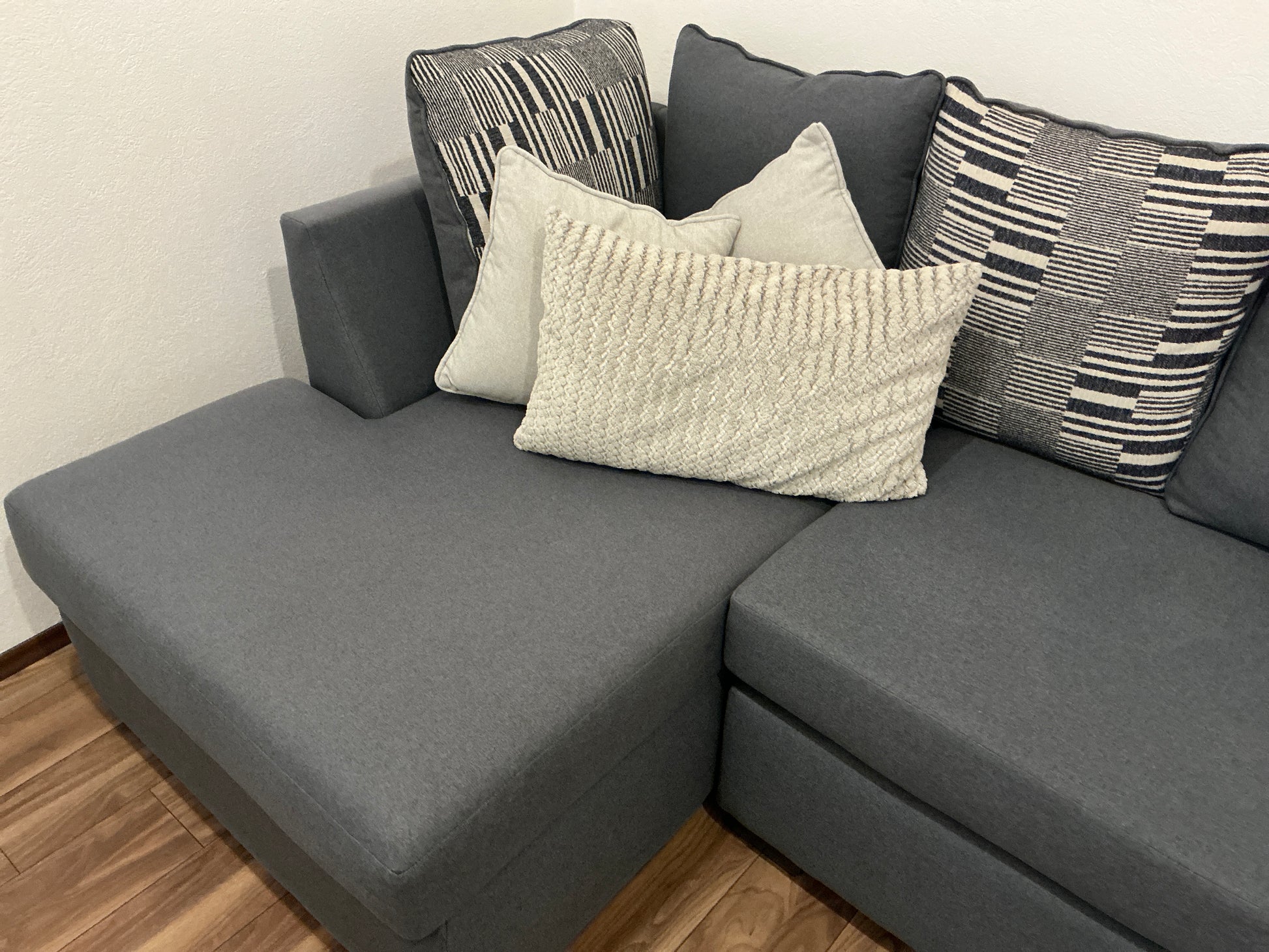 Notas del Vendedor:Sala en L de tres lugares de tela con 3 años de uso