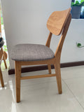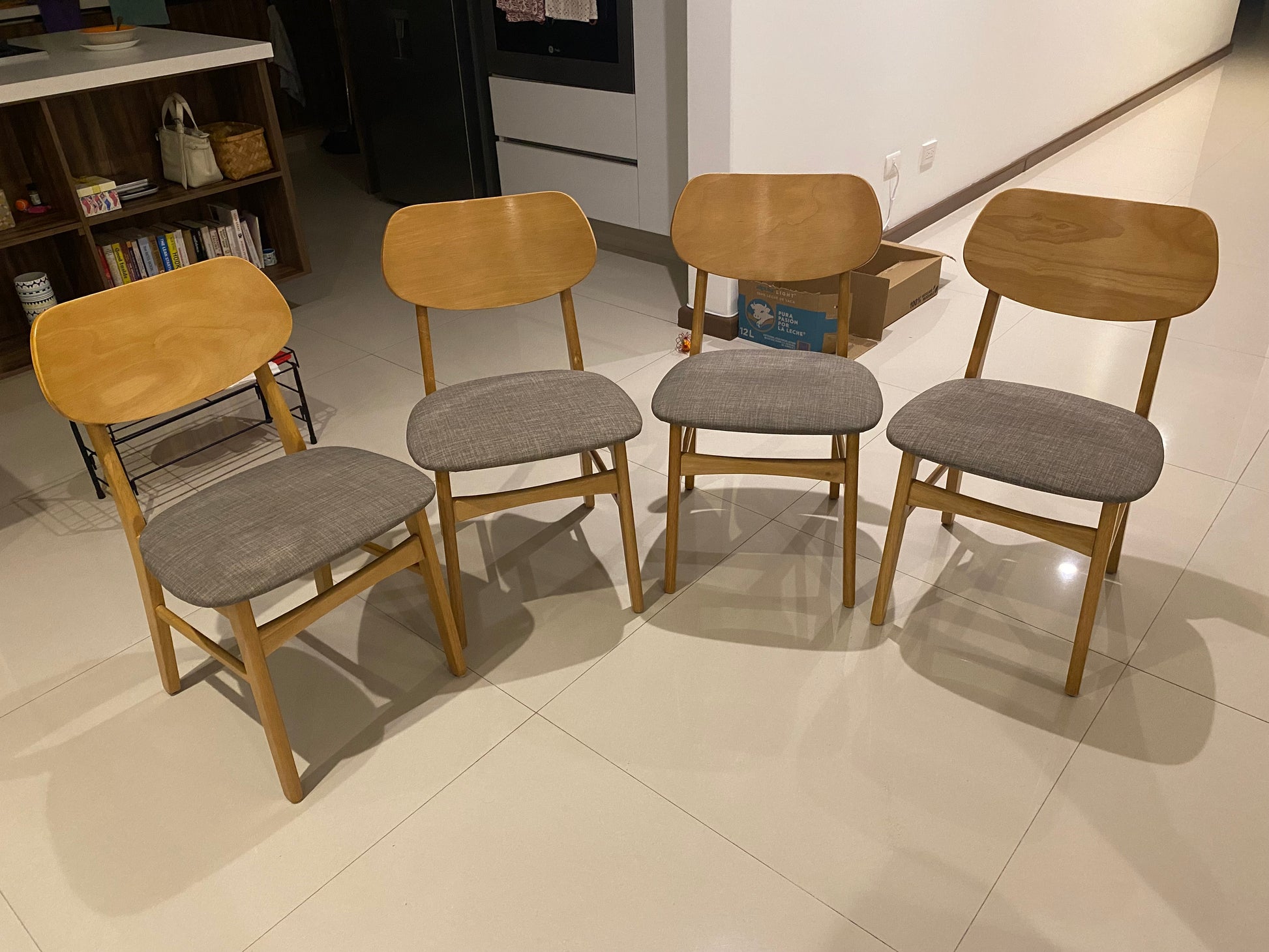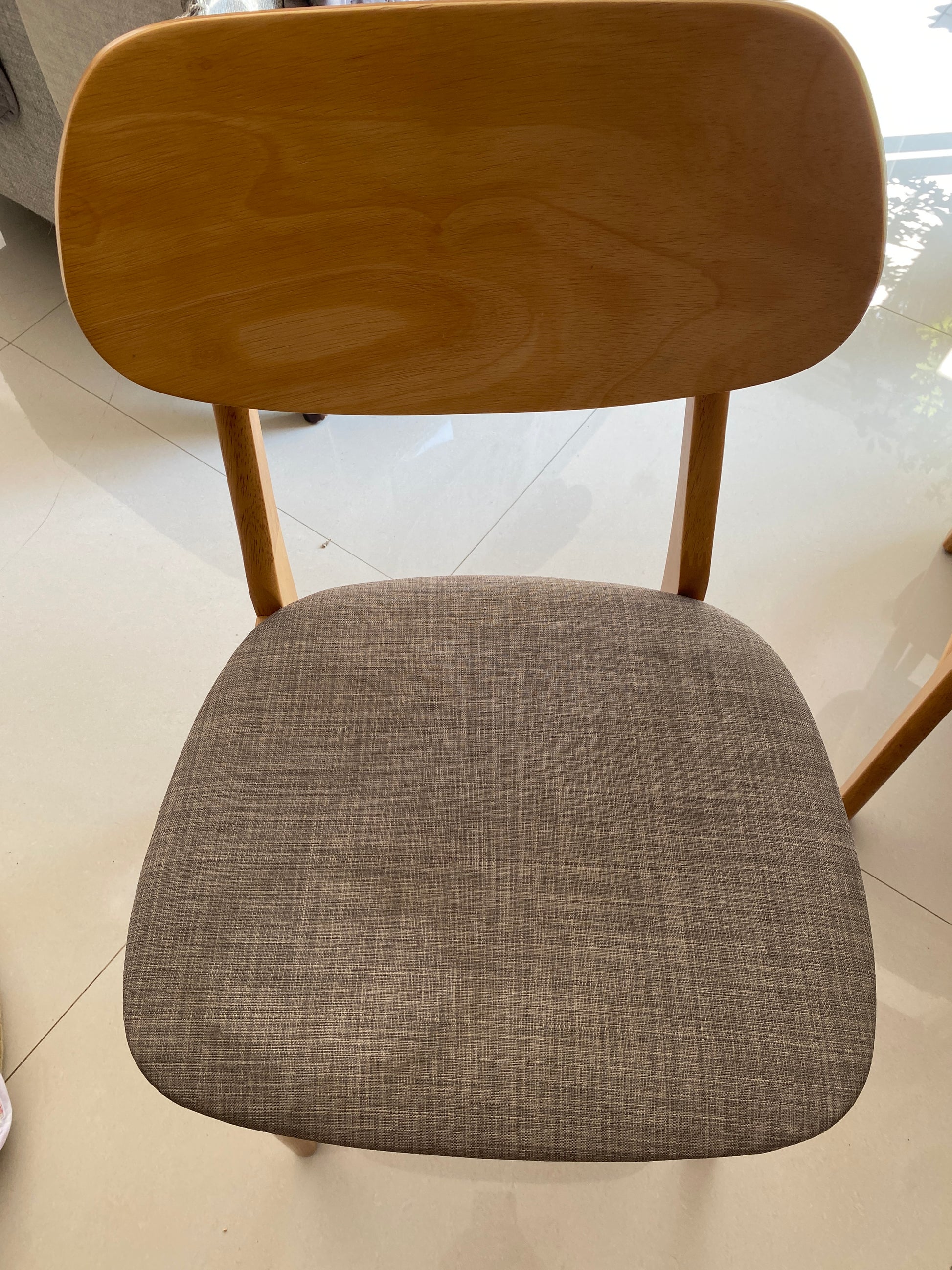 Notas del Vendedor:Cuatro sillas Salvador natural de madera, con asiento de tela color gris claro.