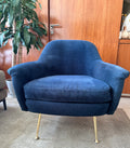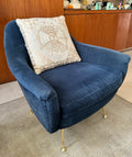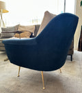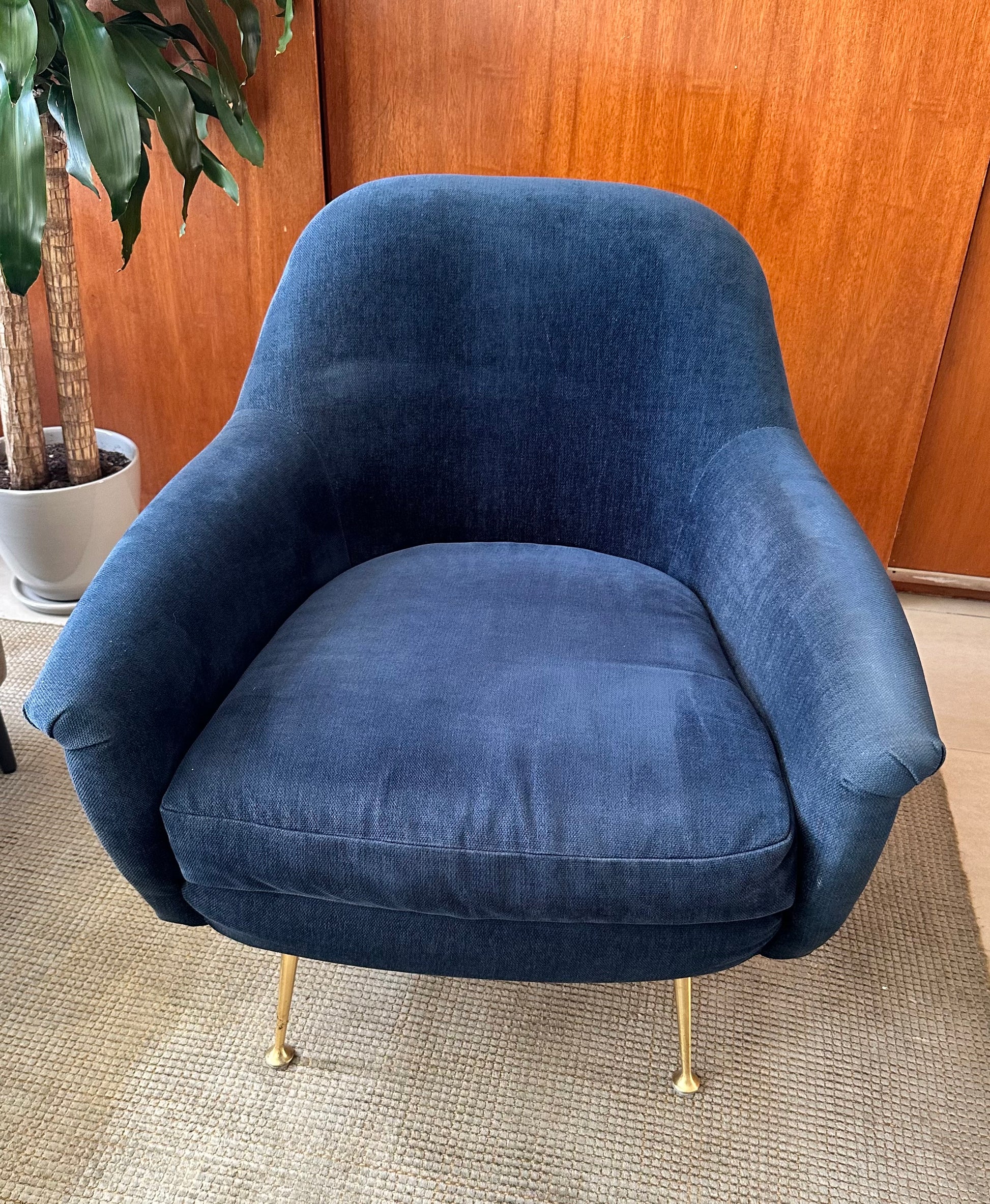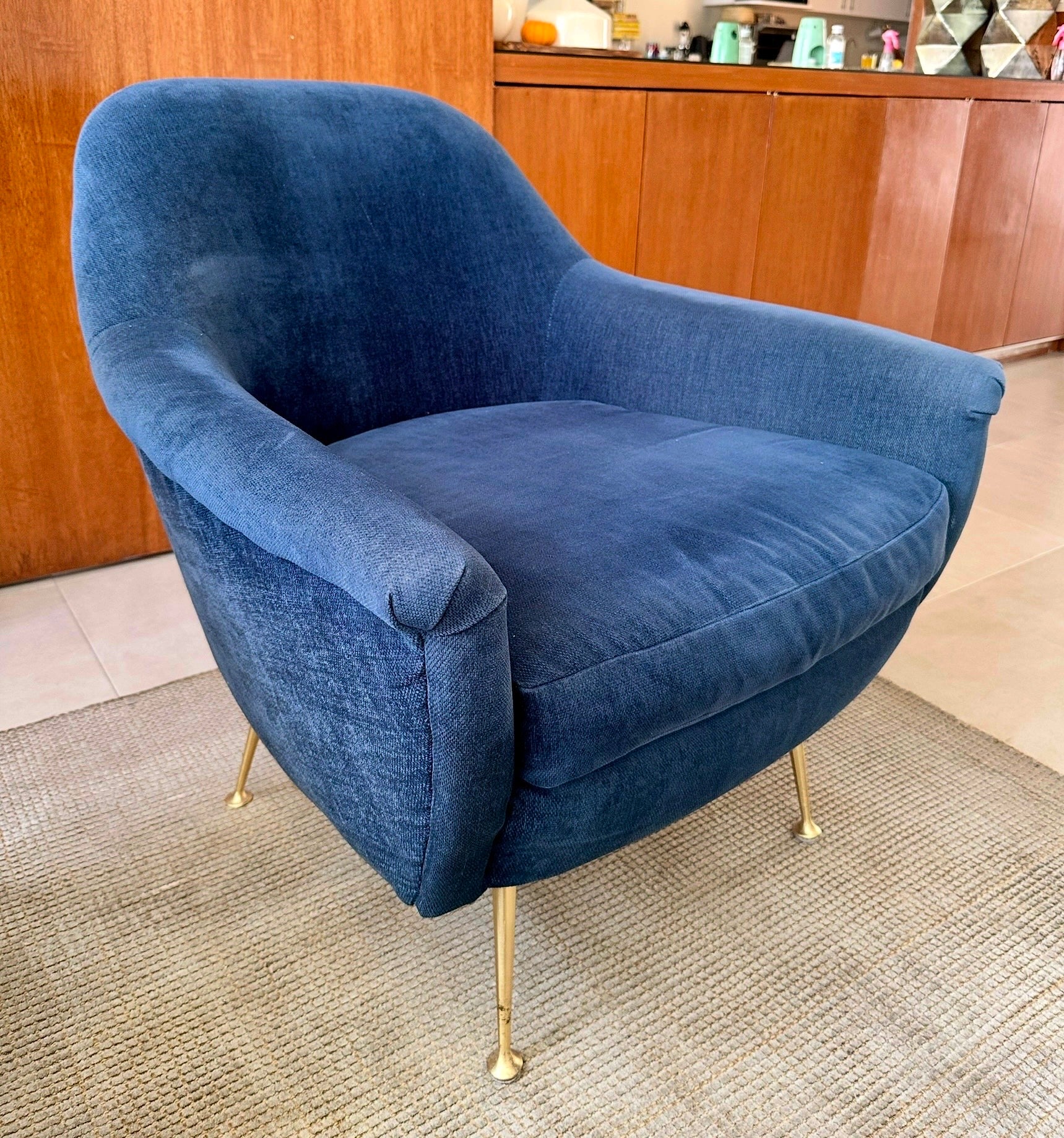 Notas del Vendedor:Sillón en Astor Velvet azul con una estructura de madera maciza y de ingeniería secada en horno para una mayor durabilidad, sus patas de metal tienen un acabado latón y son desmontables. Comodísimo, tiene un acolchado de espuma envuelto en fibra, un asiento con cojín suelto y reversible con funda con cremallera.