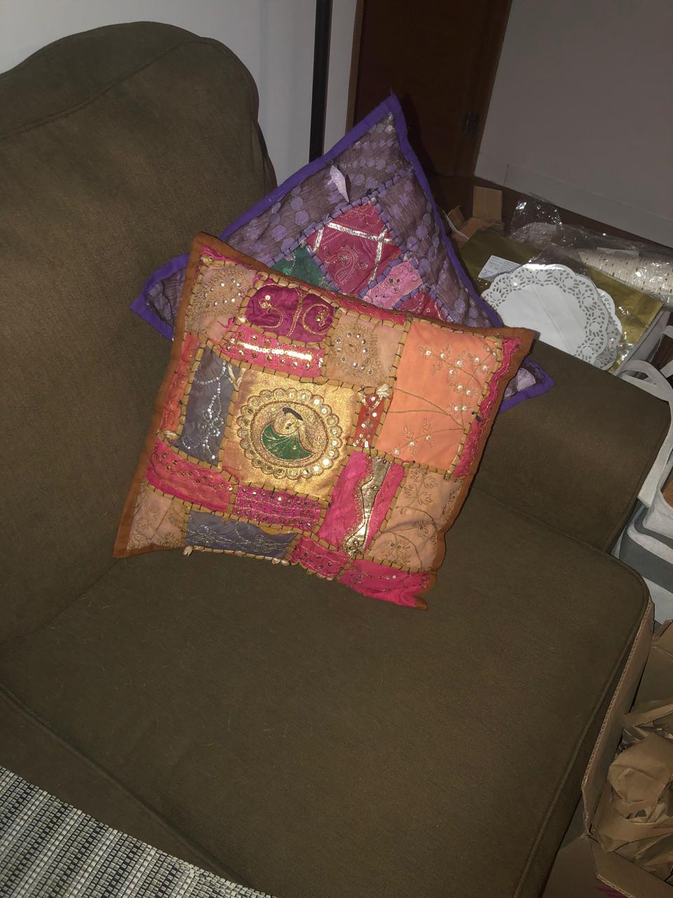 Notas del Vendedor:Hermoso y en perfecto estado (comprado en Casa Pskacuo). Color verde musgo oscuro. Con 4 fundas de cojines tipo Arabe (incluidas de regalo)